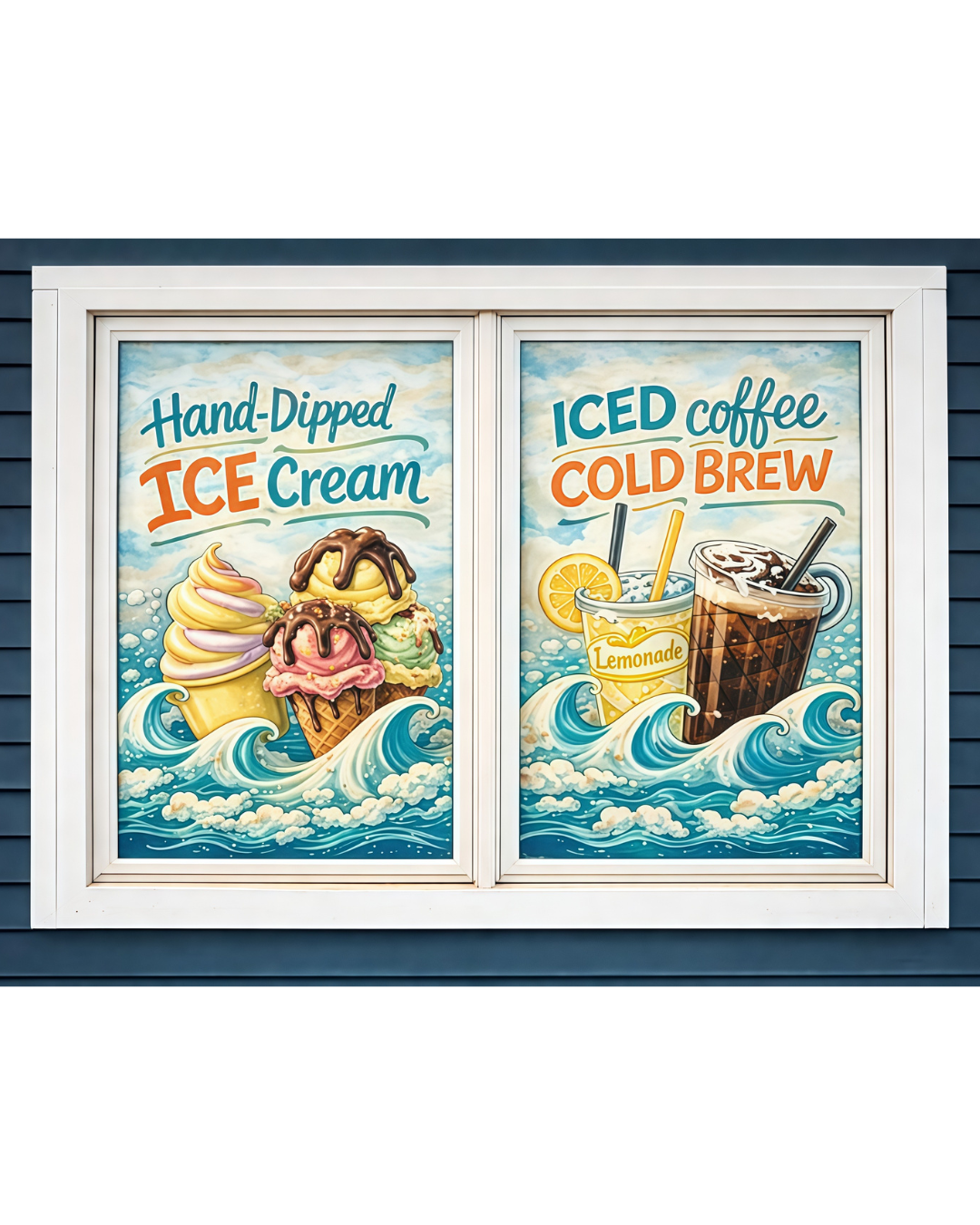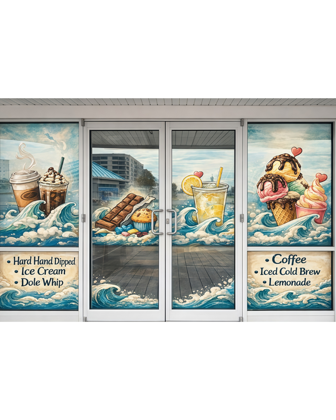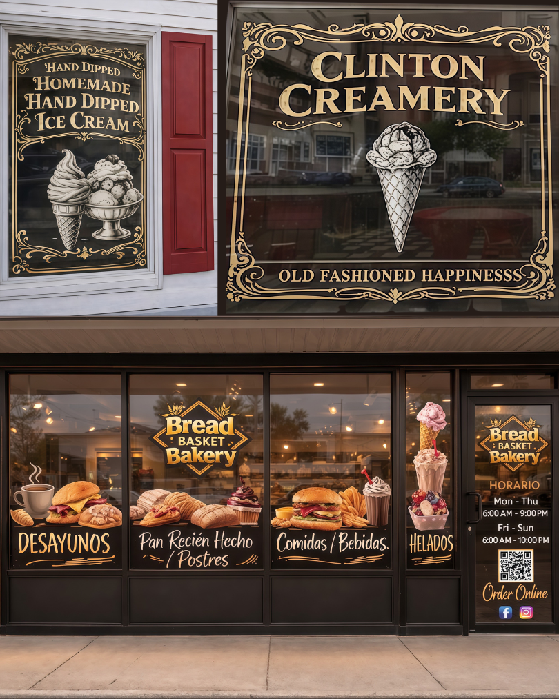 Stunning Windows Built to Last. Stop traffic and Transform your storefront into a landmark with hand-illustrated window images that pop. We combine 35+ years of traditional artistry with modern vinyl technology. The result? Eye-catching displays that are UV-protected and guaranteed to stay vibrant without fading for up to a decade.
