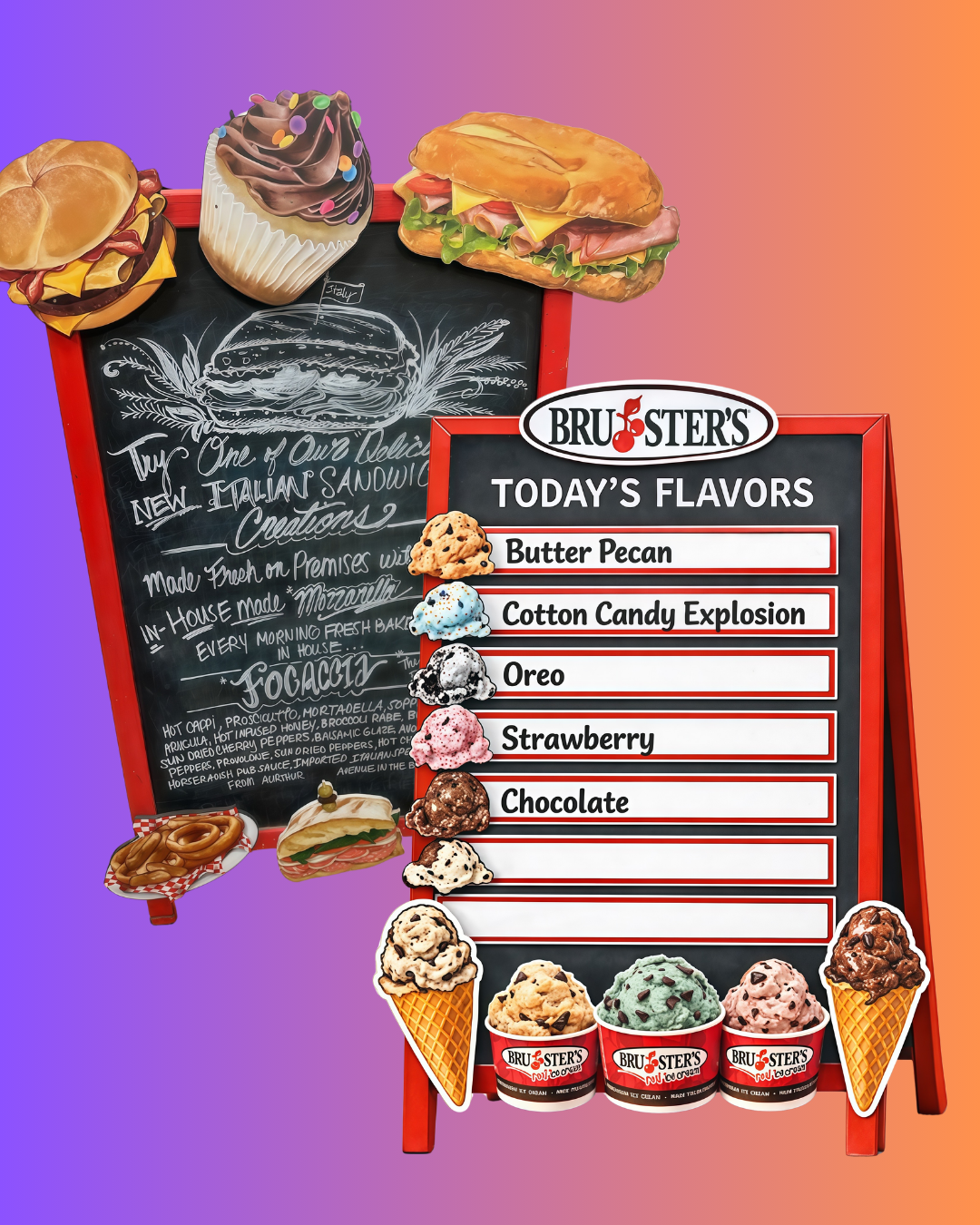 Add a touch of authentic charm to your display with hand-crafted changeable flavor markers and food signage. Specifically designed for ice cream dipping cases and gourmet displays, our markers are available in both single and double-sided formats. These vibrant signs replace generic labels with high-quality, hand-lettered personality that enhances your product presentation and stays true to your brand's unique style.